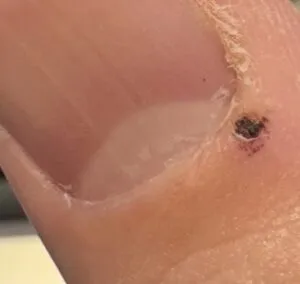 先日私の手の指に突如黒い病変ができました。